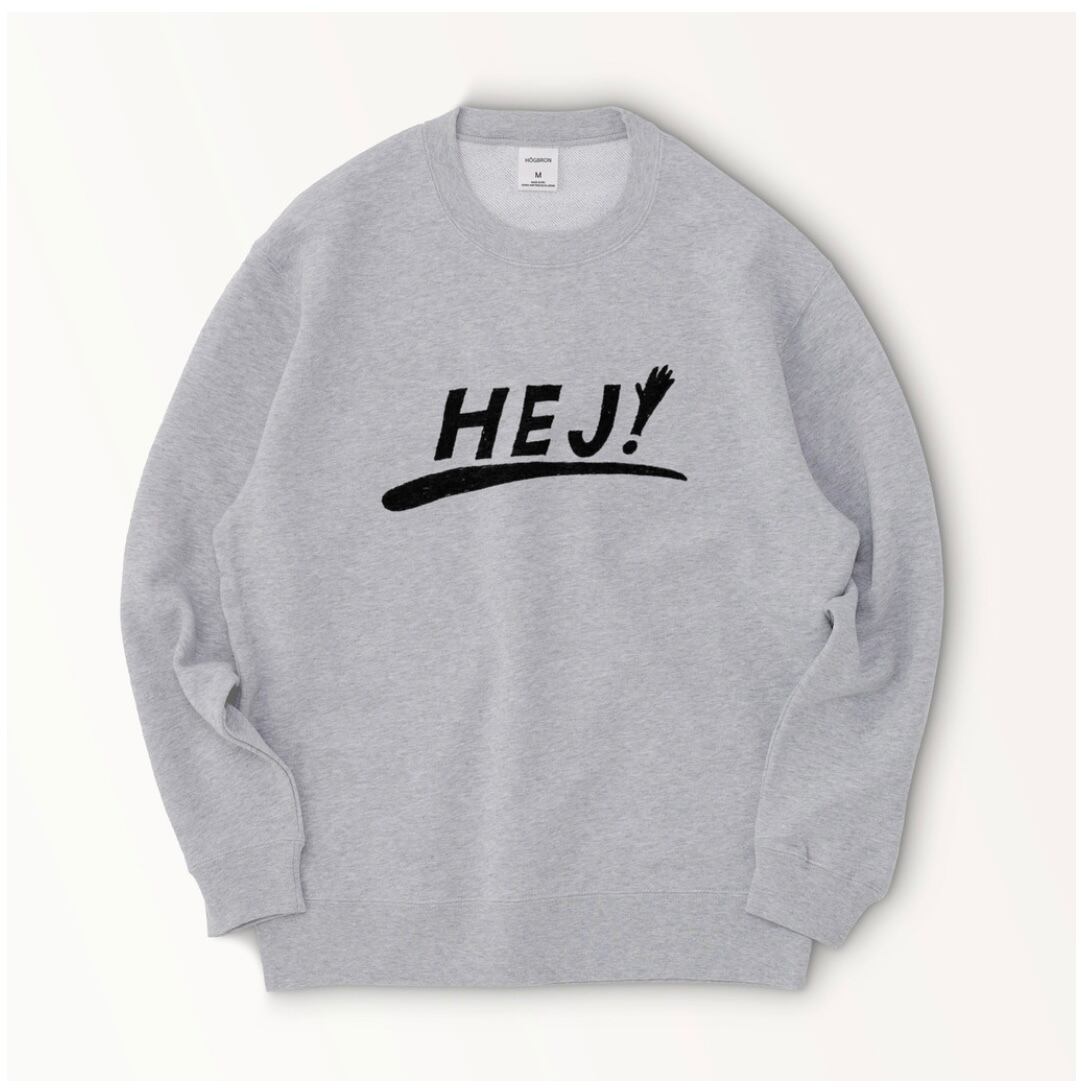『HEJ!』 スウェーデン語で「こんにちは!」 スタンダードなシルエットで程よい厚みのある着回しやすいスウェットです。 吸水性・伸縮性に優れ、肌触りがよいのが特徴です。 季節の変わり目、肌寒い場面にぴったりです。 素材:コットン100% サイズ:S, M, L, XL